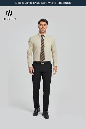 HISDERN 503 Mens Dress Shirt and Tie Handkerchief Set Classic Long Sleeve Shirts Matching Ties Formal Button Down Shirts