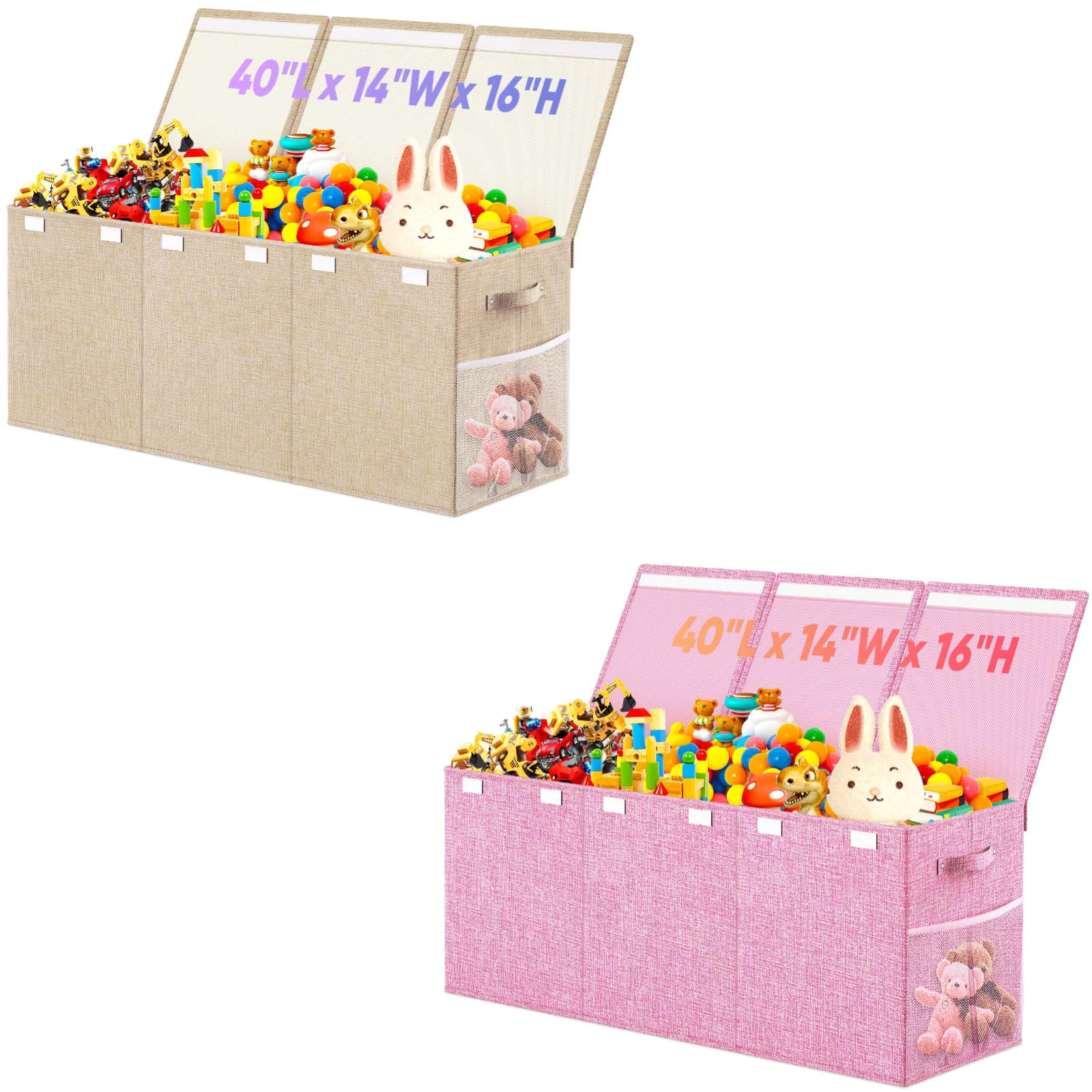 - 【Extra Large Toy Chest】Toy box chest storage with lid measures 25x13x16 inches with a 90L capacity, large enough for girls & boys toy storage to hold stuffed animals, toy cars, clothes, blankets, books, snacks, decorations, office supplies, etc. Expand your child's play space with our spacious collapsible storage bins to keep your room tidy and side mesh pockets to store interesting small items for flexible access. Say goodbye to clutter and no more worrying about them tripping over messy toys.