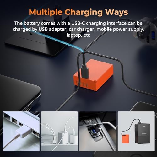- Rapid 2.5-Hour Charging: This battery has a USB-C charging port, with high current charging (5V/2A), you can have a full battery in 2.5H. And it comes with a charging indicator to clearly show the charging progress. Red indicator for charging, green indicator for fully charged.