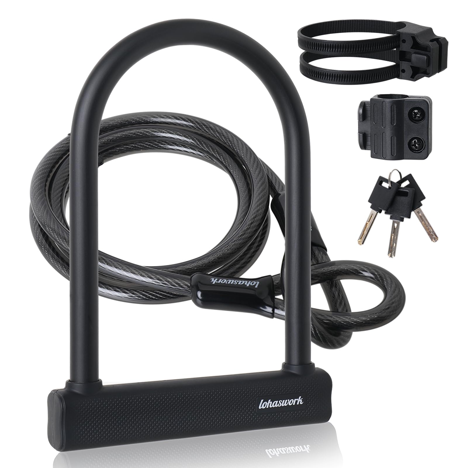 - Portable Size: With interior locking dimensions of 4.7" x 5.9", this Bike U-lock is compact yet highly effective. It comes with a mounting bracket for easy setup, offering reliable security for bikes, scooters, and even e-bikes. Its lightweight design makes it easy to toss into your backpack or clip onto your bike frame when not in use