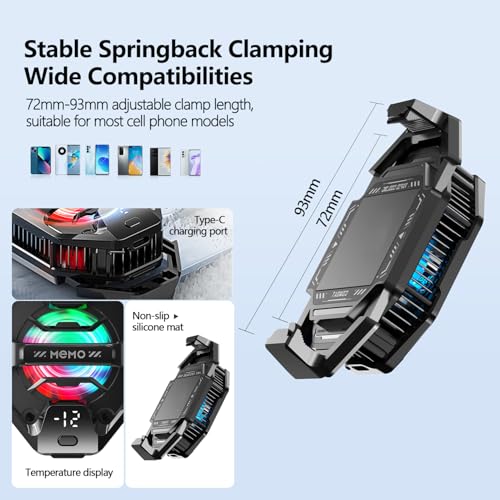 - 【Self-Contained Retractable Clip】 This phone cooling fan self 2.83"—3.66" retractable clip, suitable for most cell phone models. Non-slip silicone pads on both sides of the clip, stable springback clamping no harm to the phone.