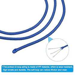 - The rope is used for making a D-loop for archery. The D-loop is an important component in the process of archery. It assists the archers by providing a stable point and maintaining a consistent position when pulling the bowstring, which leads to more accurate and consistent shooting results. Specification Color: Blue Material: PP Size: 0.6 meter x 2mm / 2 ft x 0.08 inch(Lx D) Packing List: 2 x Archery D Loop Rope Advantage The archery D-loop string is made of PP material, which is wear-resistant, high tensile and durable. The soft loop can reduce friction and wear.This string is 3 meters long, and you can freely cut it to the appropriate size according to your needs. Instruction Cut the string to the desired length, and then tie it onto your bowstring to form a D-shaped loop. NOTE:Please ensure that you tie the rope tightly.