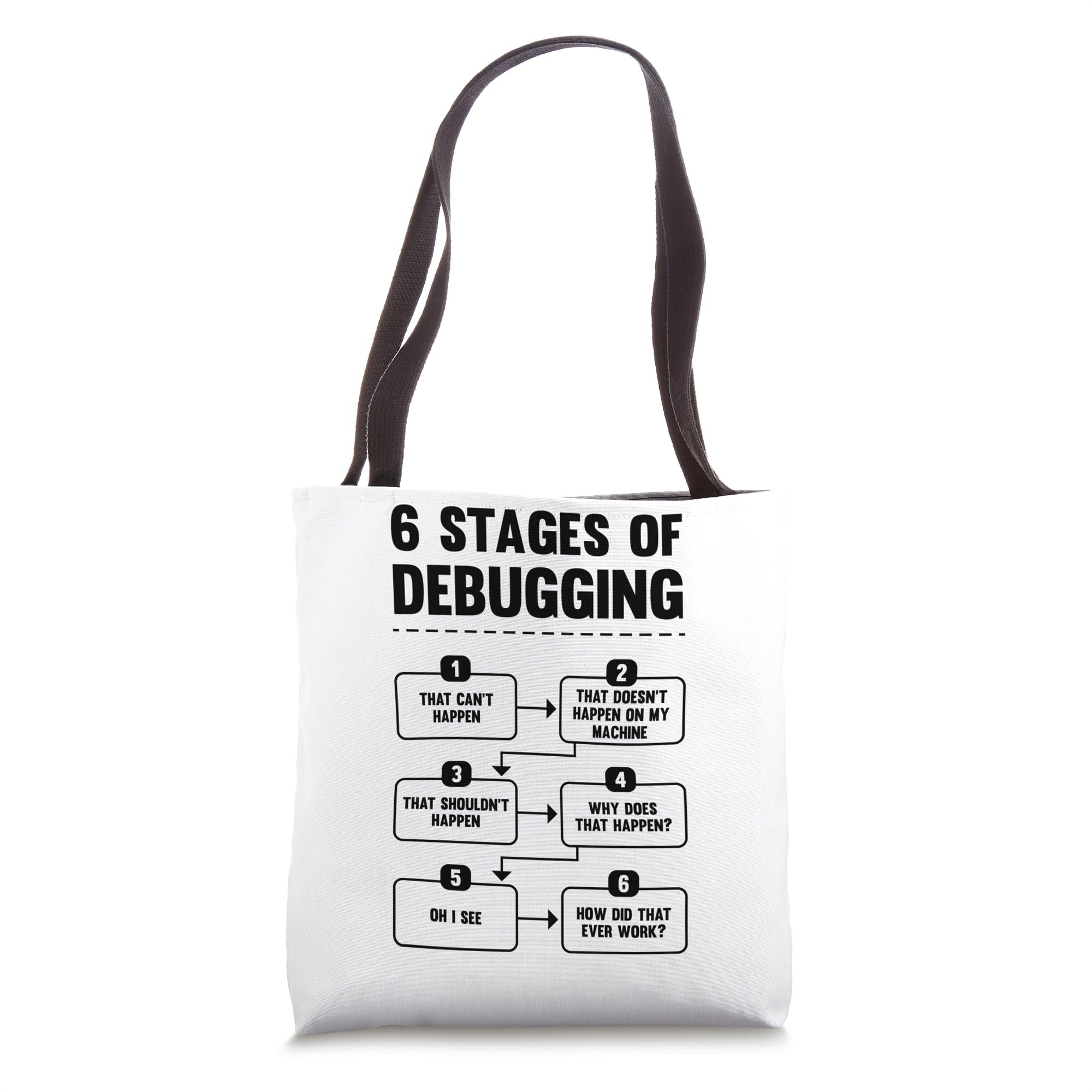 Debugging Humor Programming Struggles Software Developer Tote Bag