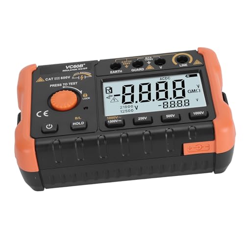- LCD Backlight Display: Megohmmeter has a high definition LCD display,maximum (60B+: 5000) character display, clear writing, no , with unit symbol display and white backlight, can be use at night or in the dark.