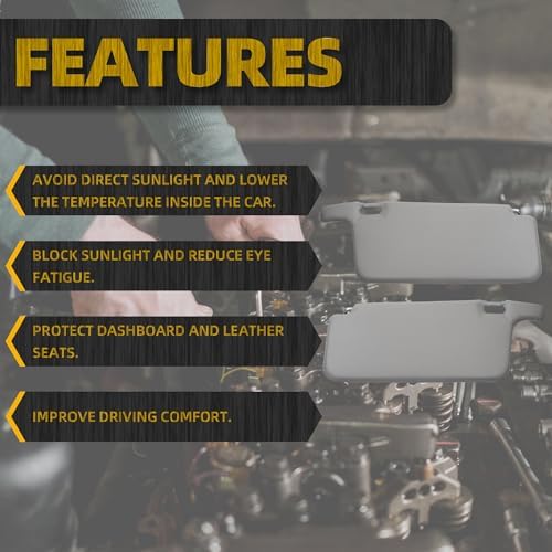 - Product Features:Replace your old and damaged sun visor with ease.Reduce direct sunlight to the driver's eyes, enhancing driving safety and comfort.