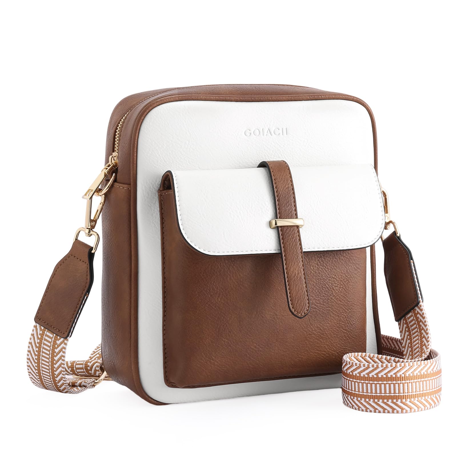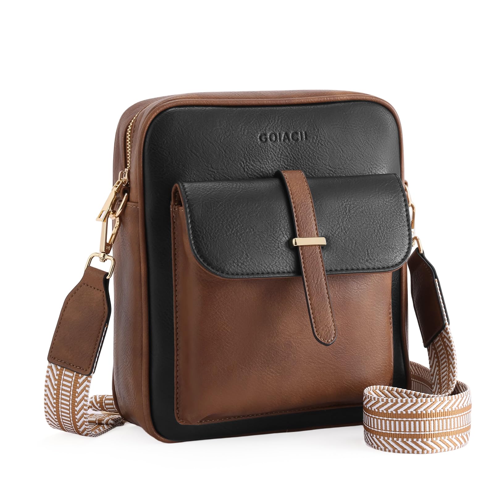 GOIACII Crossbody Bags for Women, Small Size Shoulder Handbags, Satchel Purse with Multi Zipper Pocket Soft Leather