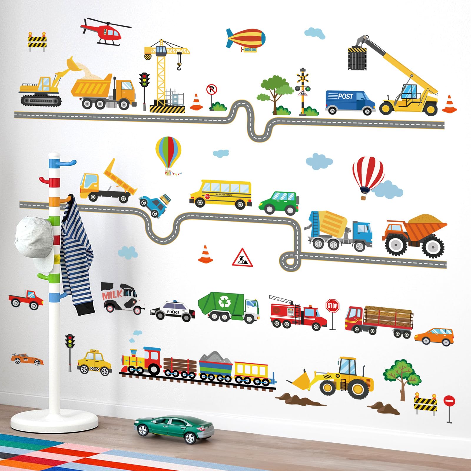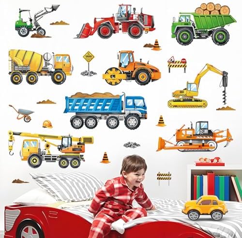 - decalmile construction vehicles wall decals are perfect to decorate boys bedroom, playroom, and baby nursery room.