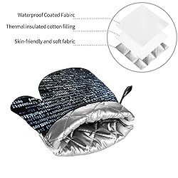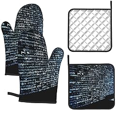 4 Pieces Kitchen Accessories: Our oven mitts and pot holders set includes 2 pieces of kitchen oven mitts (7.2x11in) and 2 pieces of pot holders (8x8in) suitable for indoor cooking, baking, grilling or outdoor barbecuing. The oven mitt set is also an ideal kitchen gift for women, men, bakers and chefs Comfortable And Soft Cotton Fabric: The kitchen oven mitts and pot holder are constructed of waterproof polyester and heat insulation fabric, soft quilted cotton lining making, which is comfortable and breathable to the touch and also protects your skin. Cooking gloves are very easy to clean, suitable for machine and hand washing Heat Resistant And Non-Slip: This Oven Mitt and Pot Holder for Cooking Gloves is heat resistant up to 500 degrees to prevent burns while you enjoy cooking and grilling. Designed with non-slip silicone to provide a firmer, non-slip grip when handling kitchen utensils Easy To Store: The Programmer Programming Code pot holders and oven mitts set come with rope design, so it is easy to store and hang them via the suspension rings when you are not using, save your room and make your kitchen look more cleaner Housewarming Gifts for New Home: Cute Oven Mitts and Pan Racks with unique pattern, great gift for Christmas, holidays, easter, thanksgiving, father's day, mother's day, dinner parties, birthdays, hostess, housewarming and a cook who loves cooking