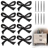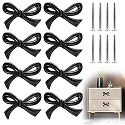 Widely Applications : Whether used to replace old handles or to fit on a new cabinet, this bow drawer knobs gives furniture cabinets a new look, perfect for doors for any purpose such as drawer door, wardrobe door, cabinet door, cupboard door, also for cabinet dresser drawers cupboard wardrobe bookcase Quality Materials : This black bow drawer knob is made of solid zinc alloy, carefully polished, resistant to deformation or breakage, can be used for a long time. Suitable for a wide range of environments Product Features : Wide range of uses Beautiful and generous,Unique black bow knobs shape in line with modern aesthetic standards. Decorative bow handles has a smooth surface, no sharp edges, it is very attractive and suitable for any style of furniture. This bow decor is a perfect choice for decorating your home Products Include : You will receive 8 bow knobs for dresser and 8 mounting screws. It is very suitable for replacing damaged handles on existing cabinets, giving your furniture a new look instantly Easy to Install : Find the position where you want to install cabinet pull and drill a hole, then pass through the screw from the back of board and thread tight to the gold drawer knobs. We provide you with 8 pcs screws to make your installation more convenient