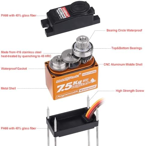 HobbyPark Waterproof 7.5kg High Torque RC Micro Servo Metal Gear Digital Arduino Servo for 1/18 TRX4M TRX4MT Redcat Ascent-18 Losi Mini LMT 1/10 TRX4 SCX10 RC Crawler RC Car Plane Boat Robot