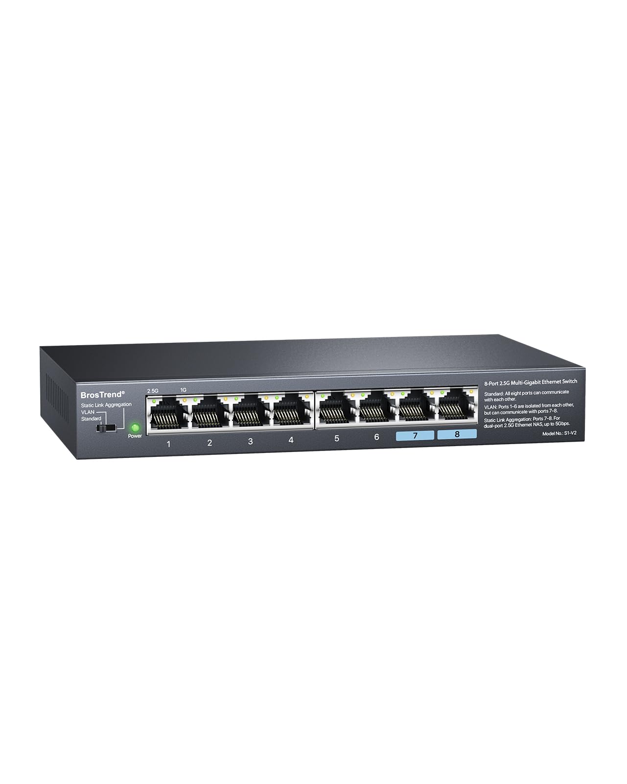 BrosTrend 8 Port 2.5G Network Switch, Unmanaged Ethernet Switch Multi-Gigabit + 5 Port 2.5GB Switch, Unmanaged Ethernet Switch for Game Console, PC, NAS, etc