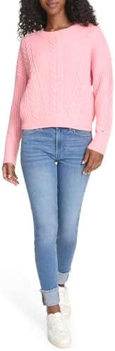 Tommy Hilfiger Womens Solid Cable Crewneck Bobbi Pullover Sweater