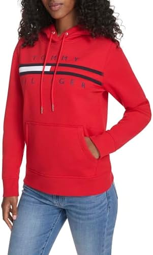 This Tommy Hilfiger Women's Sportswear Fleece Logo Pullover Hoodie Sweatshirt is a Fleece soft pullover hoodie sweater