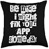 - Showcase your passion for programming with this cool design. Whether you're debugging code, crafting the new big app, or just having a laugh with your fellow developers, this statement is sure to resonate: Be nice, I might fix your app someday.
