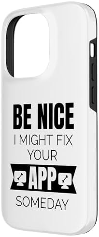 Showcase your passion for programming with this cool design. Whether you're debugging code, crafting the new big app, or just having a laugh with your fellow developers, this statement is sure to resonate: Be nice, I might fix your app someday. Perfect gift idea for Software engineers, coding professionals and Hackathon participants. This design combines clever wordplay with a modern, minimalist aesthetic, making it a must-have for anyone in the tech community