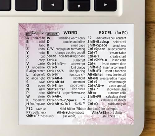 Word and Excel Reference Guide Sticker, Function Key Decals for Universal Laptop, Desktop, Window Tips, Waterproof, Anti-Scratch, 1PC (Window Cherry Blossom)