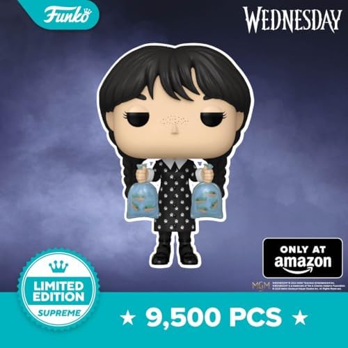 A terrifyingly terrific POP! Wednesday Addams is here to uncover dark secrets and solve heinous crimes. Complete your Nevermore Academy attendance sheet by welcoming this exclusive POP! Wednesday Addams with piranhas to your Netflix Wednesday collection. Snap to it and reunite this creepy and kooky sleuth with her fellow peers in your POP! Television lineup. Only 9,500 of this Limited Edition – SUPREME collectible were made! Vinyl figure is approximately 3.9 in (9.9 cm) tall. Find more Funko products at Amazon.