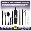 - ✅ Providing a fancy dine-in experience anywhere around the globe: This travel utensils Set with Case has 10 portable utensils including a spoon, fork, knife, butter knife, chopsticks, 2 straws, 2 salt shakers, and a straw cleaner, Camping utensils set is Portable, lightweight, and durable travel cutlery for outdoor adventures.