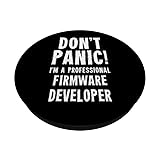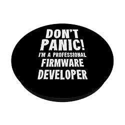 Ideal for developers writing firmware, enabling hardware functionality, and optimizing performance. A funny and unique gift idea for development experts - "Don't Panic! I'm A Professional Firmware Developer". Adhesive backing attaches the PopGrip to your case or device. Will not stick to silicone, leather, waterproof, or highly textured cases. Works best with smooth, hard, plastic cases. Not compatible with wireless charging Printed top is swappable with other compatible PopGrip models. Just press flat, turn 90 degrees until you hear a click and remove to swap.