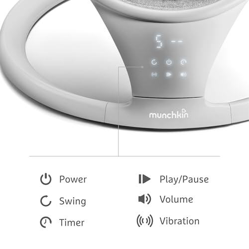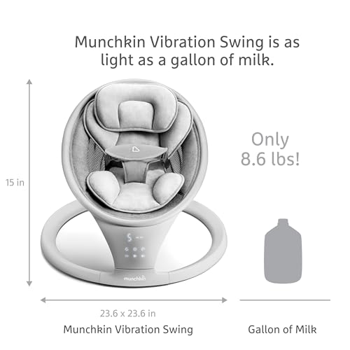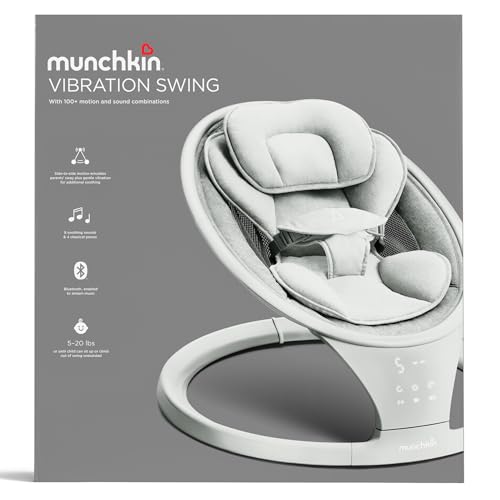Munchkin Electric Baby Swing with Vibration - Portable Swing for Newborn and Infant, Bluetooth-Enabled Smart Seat with Music, Motion, and Sounds, Light Grey