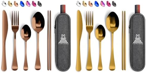 - ✅ Providing a fancy dine-in experience anywhere around the globe: This travel utensils Set with Case has 5 portable utensils including a spoon, dessert spoon, fork, butter knife, and chopsticks, Camping utensils set is Portable, lightweight, and durable travel cutlery for outdoor adventures.