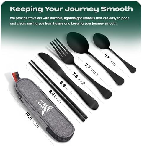 - ✅ Providing a fancy dine-in experience anywhere around the globe: This travel utensils Set with Case has 5 portable utensils including a spoon, dessert spoon, fork, butter knife, and chopsticks, Camping utensils set is Portable, lightweight, and durable travel cutlery for outdoor adventures.