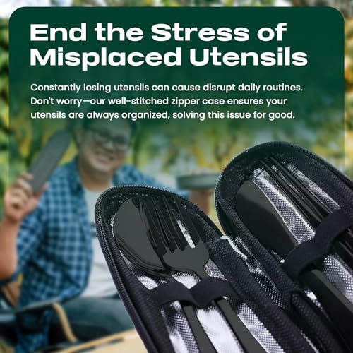 - ✅ Say No To Single Use Plastic: Our reusable utensils set with case helps protect the planet from global warming. Use this durable silverware case travel set for an extended period, reducing single-use plastic waste.