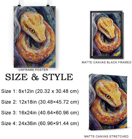 Python Reticulated Canvas Wall Art Animal Decor, Python Reticulated Poster Prints Wild Animal Artwork for Living Room Bedroom Office 190HD922
