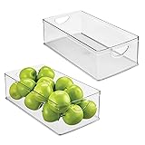 EXTRA-LONG - This iDesign Extra-Long Storage Bin offers ample space for organizing oversized items like water bottles, baking supplies, canned goods, cleaning products, and more; Perfect for maximizing storage in deep cabinets or pantry shelves; Set of 2 CLEAR AND STACKABLE - Clear plastic construction provides visibility, and built-in handles make carrying effortless; Stackable design organizes kitchen cabinets, pantry or fridge shelves, and countertops; Ideal for snacks, produce, canned goods, and more VERSATILE - This clear plastic storage bin is perfect for organizing bathroom toiletries, cleaning supplies, laundry room essentials, craft materials, or office accessories; Its multi-purpose design makes it ideal for any room in the home or workspace. QUALITY CONSTRUCTION - Made of BPA-free plastic that is shatter-resistant; Food safe; EASY CARE - Clean with mild soap and water; Do not place in the dishwasher MADE TO FIT - Storage bin measures 16" x 8" x 5" high / 40,6 cm x 20,3 cm x 12,7 cm