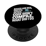 For Coders, IT, Computer Tech, Programming Nerds and Geeks who loves humor. This "Roses are red, Violets are blue, Code didn’t compile, What did I do" poem is perfect for you. Show your humor with this poetry literature design. Ideal for Coders, Software Developers who loves humor. This Literary inspired design featuring a funny poem is perfect ideal for you. Showcase your passion in programming with this Funny Coding Software Dev Humor & Programmer Poems. Adhesive backing attaches the PopGrip to your case or device. Will not stick to silicone, leather, waterproof, or highly textured cases. Works best with smooth, hard, plastic cases. Not compatible with wireless charging Printed top is swappable with other compatible PopGrip models. Just press flat, turn 90 degrees until you hear a click and remove to swap.