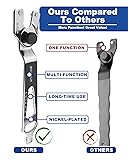 Innovative 4-in-1 Multifunction Tool: Wrench, bottle opener, and flat-blade screwdriver, unlike standard single-function wrenches, this tool combines multiple utilities in one compact design. Versatile Compatibility: Adjustable wrench range of 9/16"-2 1/16" ensures universal fit for most DeWalt, Makita, and other angle grinders; center wrench section perfectly matches 3/8"-3/4" hexagonal nuts, providing unparalleled flexibility for diverse grinding and maintenance applications across automotive, construction, and DIY projects Premium Construction: Engineered with high-grade A3 steel and precision nickel-plating; The HRC15 hardness rating guarantees superior strength and resilience. The nickel-plated surface creates a dense protective film, preventing damage from moisture, air, and chemical exposure. Wide Application Range: Perfect for automotive repair, industrial maintenance, home DIY, and construction projects. Transforms a standard workshop tool into a versatile companion for professionals and DIY enthusiasts, reducing the need to carry multiple tools. Ergonomic and Lightweight: Compact 8-11/16" length, weighing only 0.42 pounds for easy handling, streamlining your toolkit and improving overall efficiency.