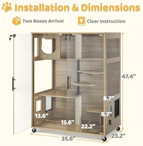 - Transparent Glass Doors: Easily observe your pet and keep a close bond, allow cats to observe the outside world, reduce the anxiety caused by the closure, and create a more comfortable environment