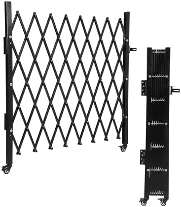 Single Folding Security Gate, 50" H x 67" W Flexible Expanding Security Gate, Folding Driveway Door Gate, Aluminum Security Gate, 360°Rolling Barricade Gate, Scissor Gate or Door, Black