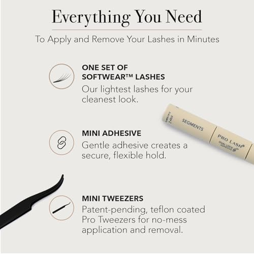 • 7+ Days of Wear – Pro Lash SoftWear cluster eyelash extensions are built to last—up to 7 days of wear or more; sweatproof and waterproof, our adhesive system starts with our non-sticky Dual Lock Adhesive (included) that ensures a secure bond when crimped and locked into places with tweezers (included)
