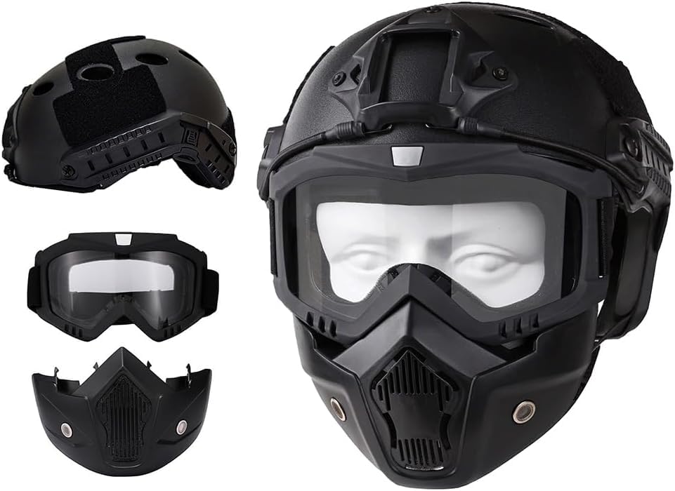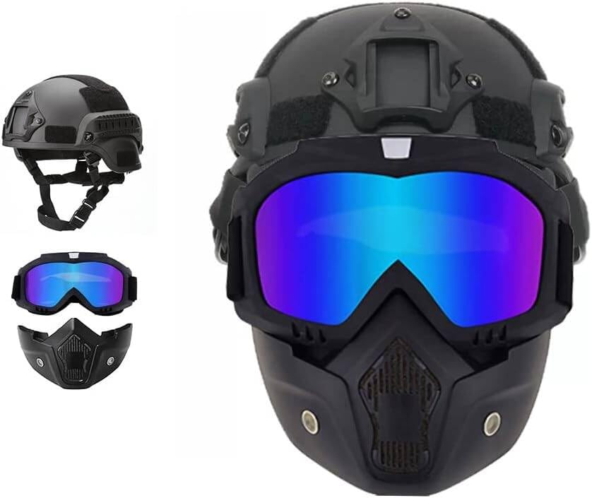 Airsoft Helmet and Mask, MICH Airsoft Helmet with Removable Full Face Mask, Suitable for Paintball, CS Games, Role-Playing and Other Outdoor Activities