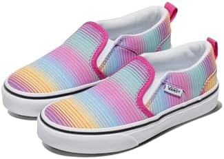 She'll slip into effortless style and comfort with the Vans Missy Asher sneakers. Great for girls transitioning between youth and teen sizes, these Vans slip-ons are the perfect blend of timeless design and modern, easygoing comfort. The durable canvas uppers and stretchy side panel accents make them an easy-to-wear, stylish addition to any outfit – from school uniforms to her own unique style of dress. Meanwhile, the padded collar and vulcanized rubber waffle outsole deliver superior comfort and traction whether she's rushing to class, going to the movies, or just hanging out with friends. Since 1966, Vans has inspired creativity, individuality, and fun – because growing up never means giving up her style.