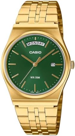 Casio MTP-B146G-3AV Men's Vintage Gold Tone Stainless Steel Green Dial Day Date Analog Watch