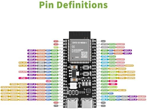 3pcs Pre-Soldered ESP32-S3-DevKitC-1-N8R2 Development Board Integrated 2.4GHz WiFi Bluetooth 5.0 ESP32-S3-WROOM-1 Microcontroller Processor Dual Type C Interface for Arduino