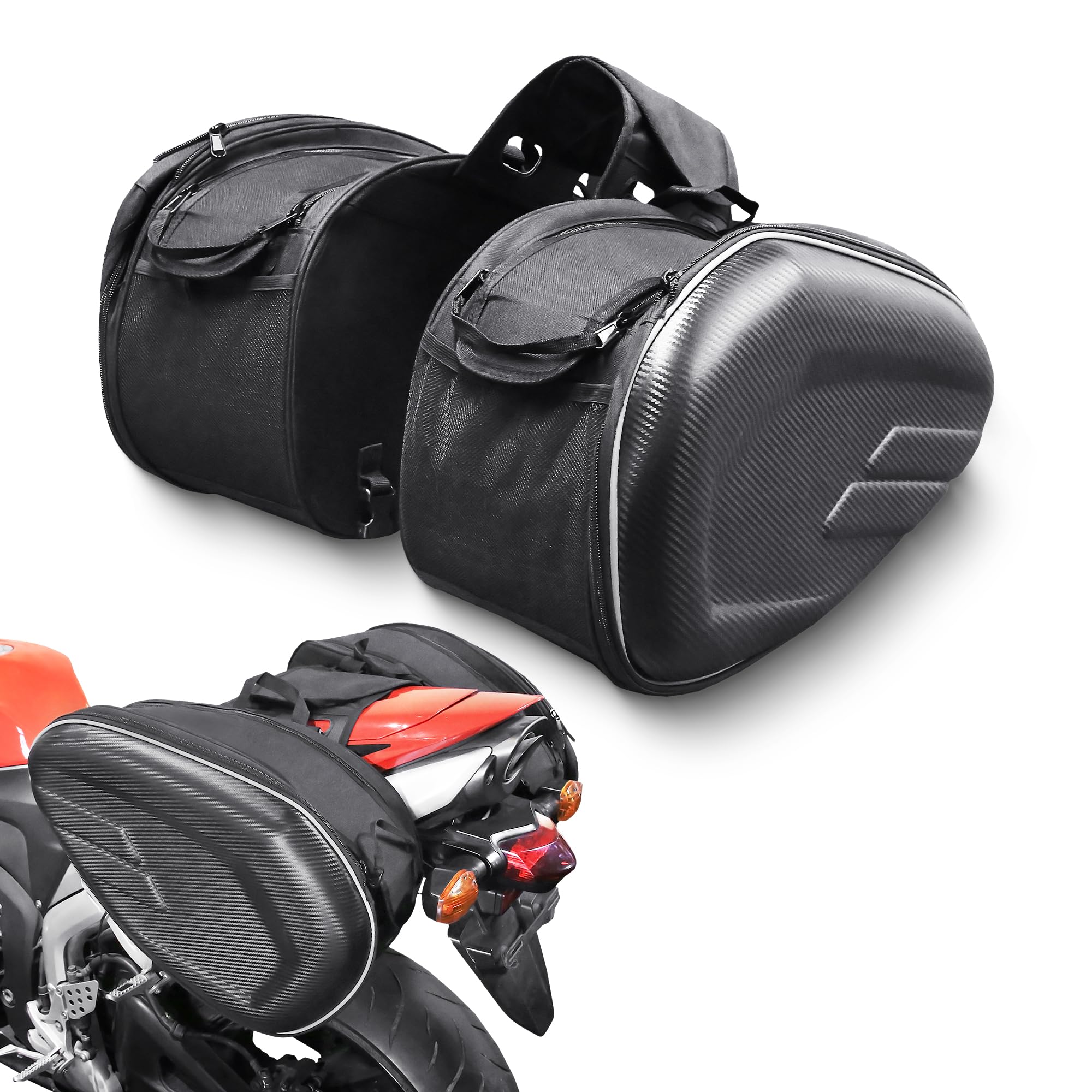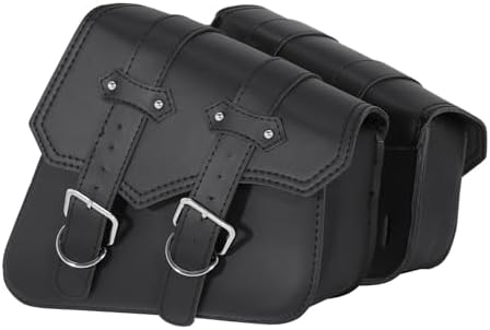 - Color: Black. Material: PU Leather. Durable: Leather motorcycle side bags made with a high quality PU material, a clean finish and a long service life.