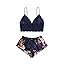 WDIRARA Women's 2 Piece Lingerie Floral Lace Cami Top with Satin Shorts Sleepwear Pajama Set