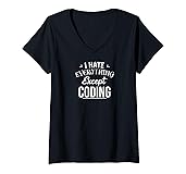 Womens Funny Programmer Humor: I Hate Everything Except Coding V-Neck T-Shirt