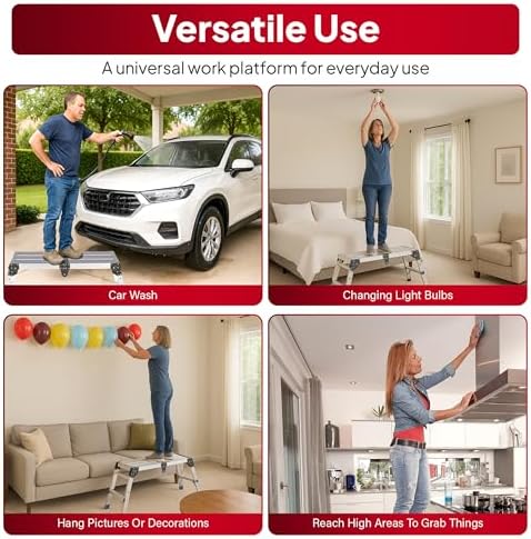 - ADJUSTABLE HEIGHT FOR COMFORTABLE REACH: Designed like an adjustable height stool but built for real work, this platform lets you choose the right level from 14 to 20 inches—no more awkward stretching or shoulder straining for overhead tasks