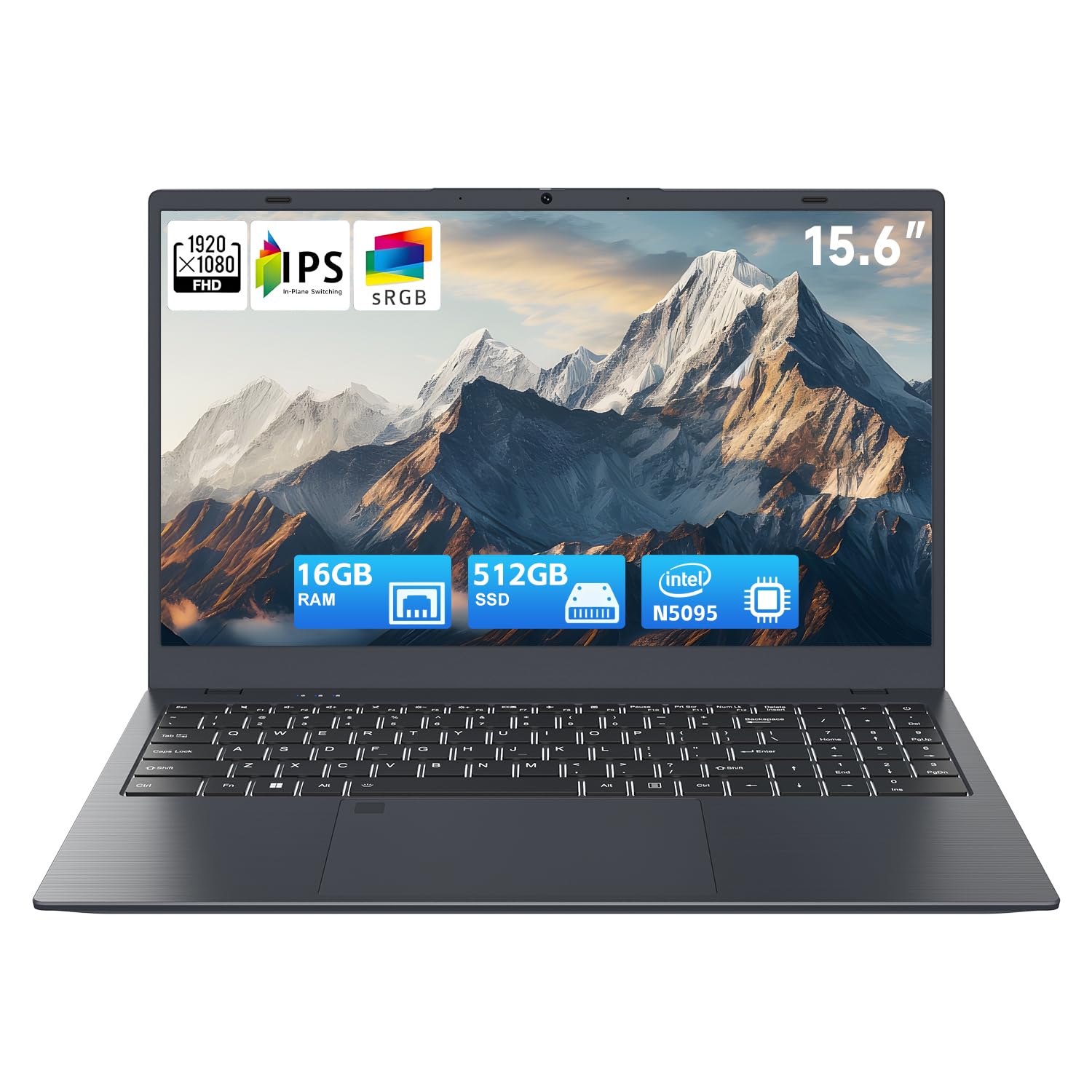 15.6" Laptop Computer, 16GB RAM 512GB SSD (Up to 2TB), N5095 Processor (4-Core, Up to 2.9 GHz), Win11 Pro, 1080P FHD Display, Fingerprint, Backlit KB, Wi-Fi 5, BT5.0, HDMI, Type-C, Laptops