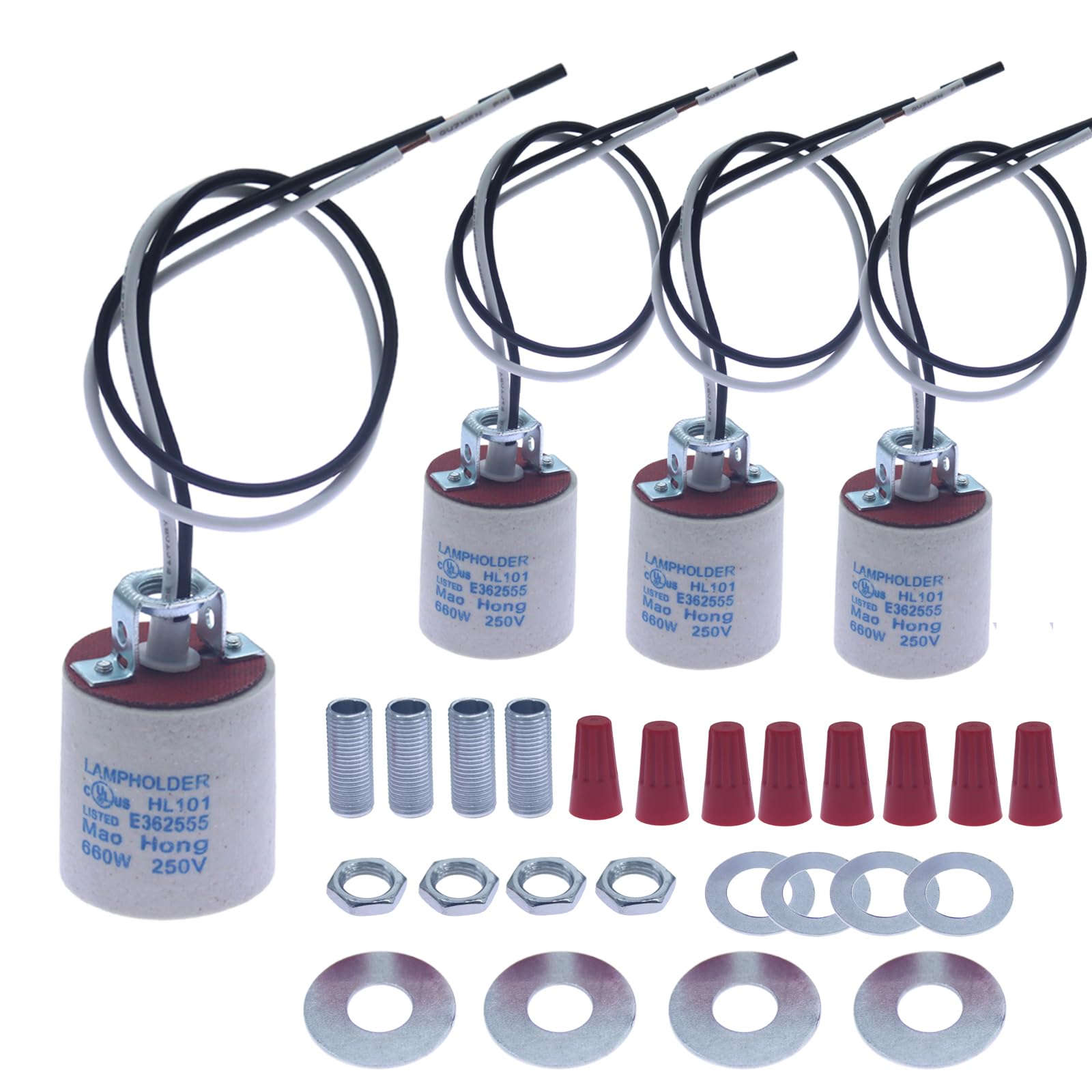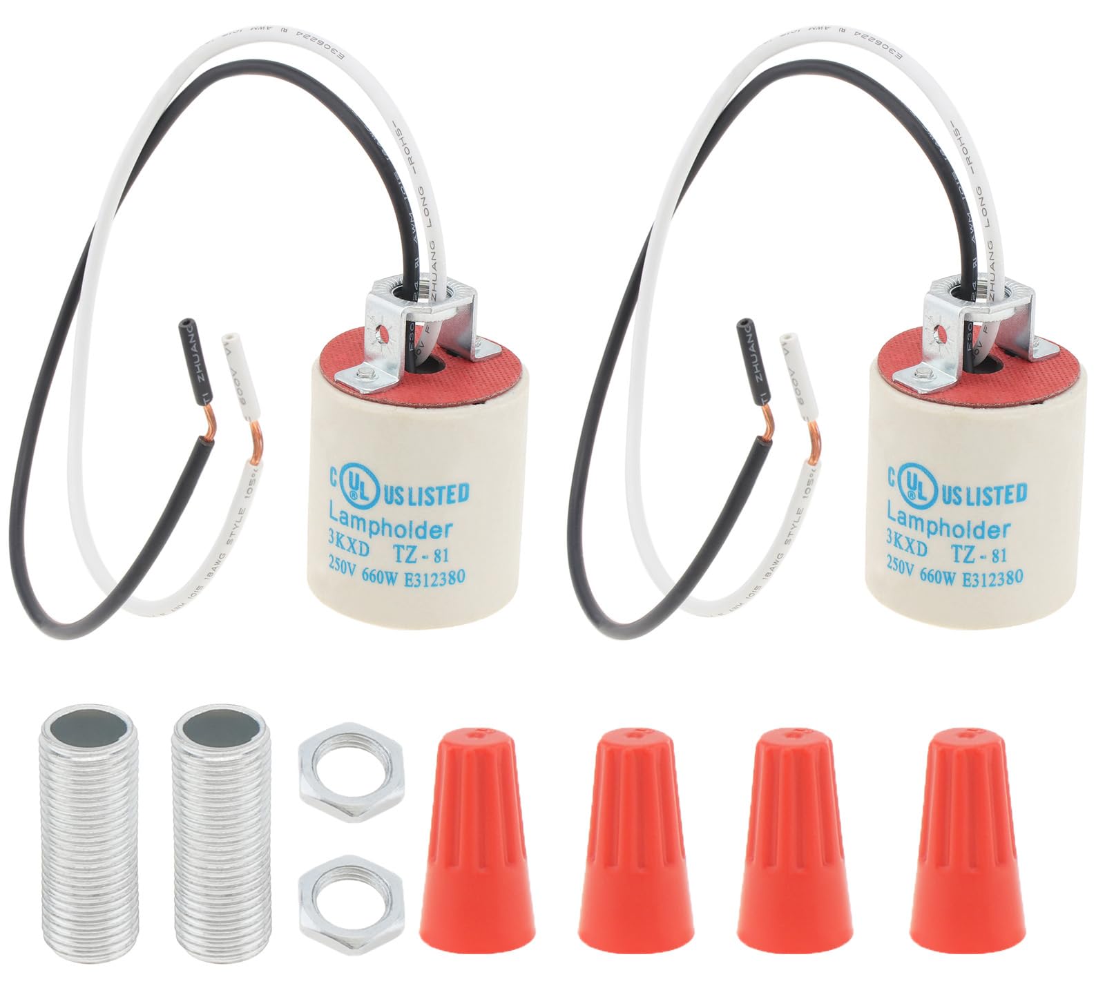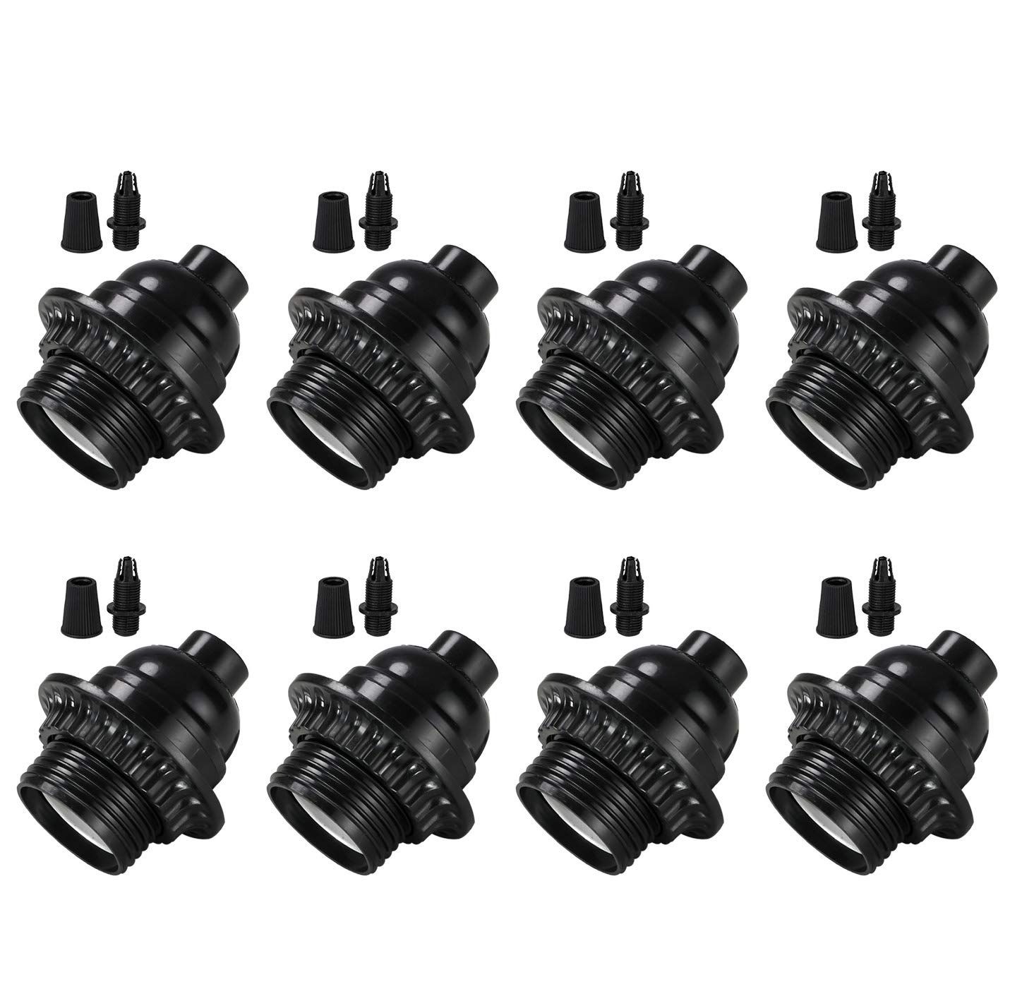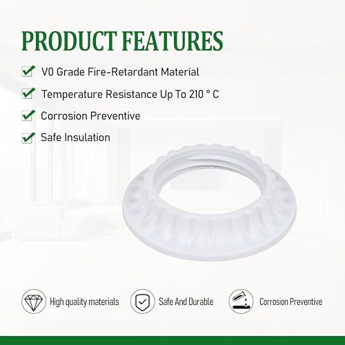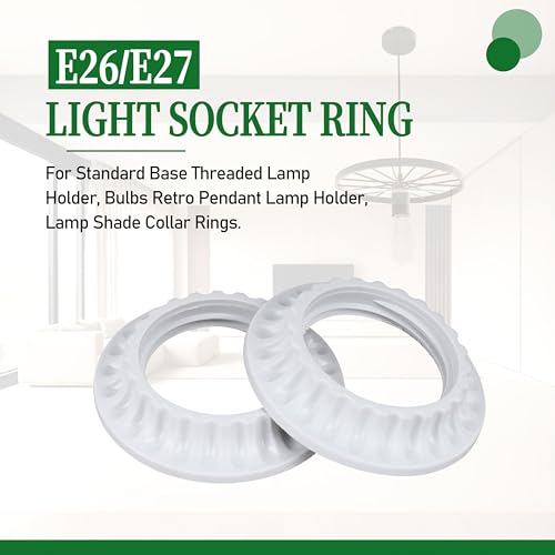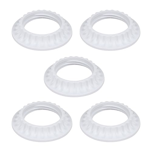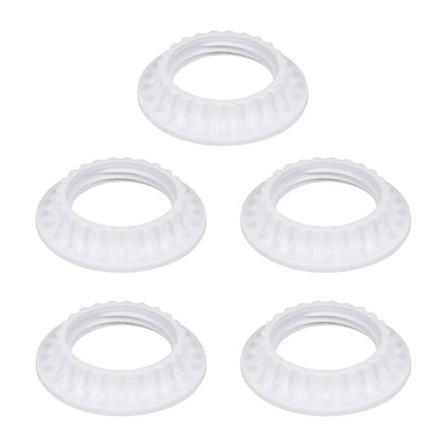 E27/E26 Universal Lamp Holder Multi Functional Accessory Set Including Threaded Locking Ring/Dustproof Covering Ring/Lamp Holder Fixing Ring/Lamp Clamp Ring White 5-Piece Installation Kit