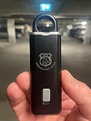 - Easily attaches to your keychain or fob with the included carabiner clip. To activate the 130dB alarm and flashing white strobe light, just pull the C-ring. It’s fully rechargeable with the included USB cable. The light lasts for 300 minutes, while the alarm can run continuously for 70 minutes.