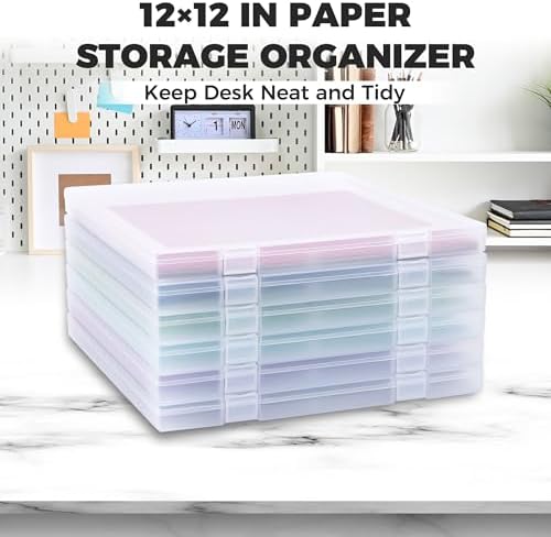 Scrapbook Paper Storage, 6 Pack Stackable Plastic File Storage Box Set, 12"x12"x1.1" Craft Organizer Storage, U-Shaped Locking Mechanism, Ideal for Office, Home, and School Document Organizer