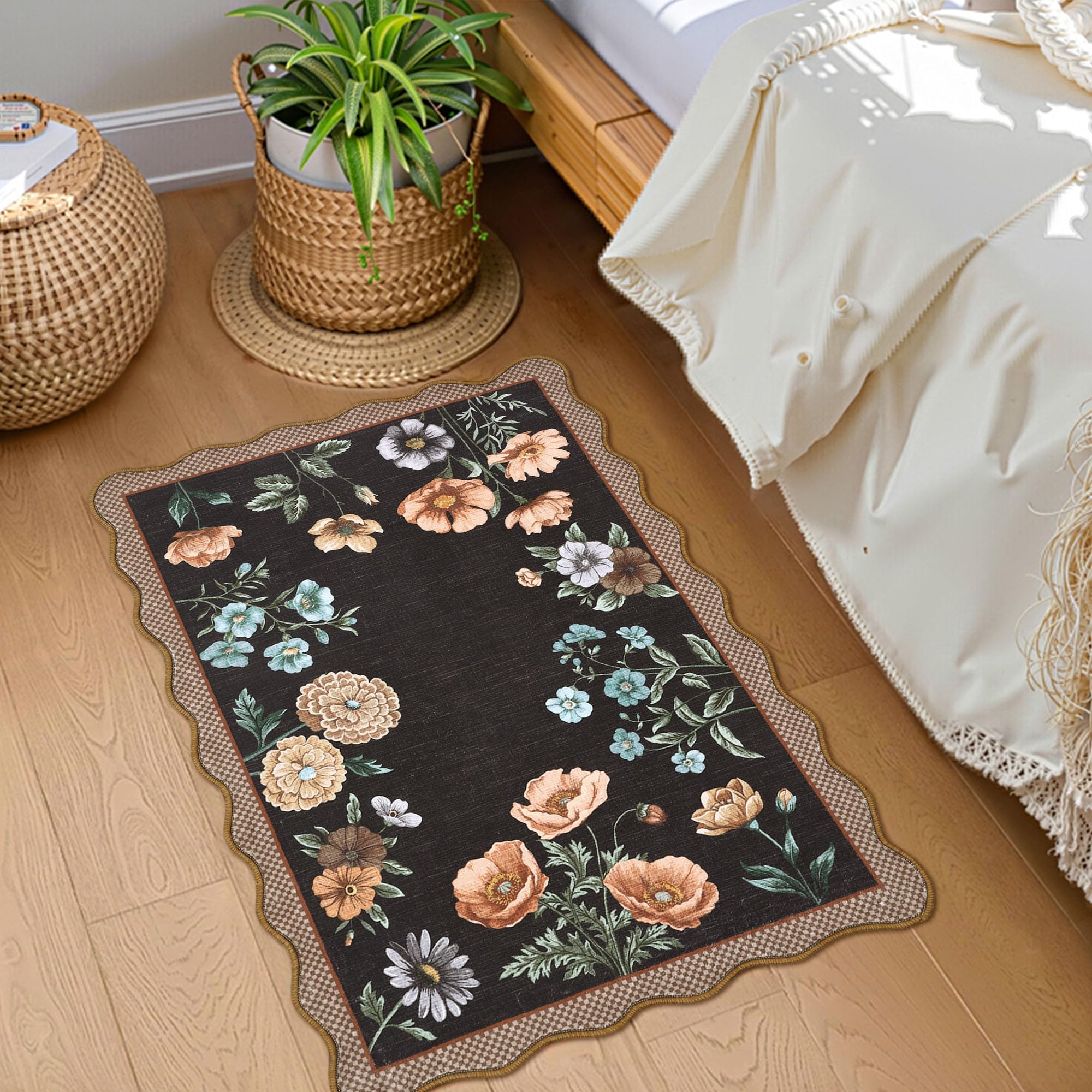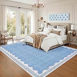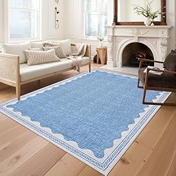 【Unique Scalloped Design】It is a gorgeous washable and foldable rug featuring a minimal neutral cream tone with a scalloped edge design. A timeless, modern, and unique design to add to any space.Due to the nature of printing, the area rug design may vary slightly from the product photos, making each scalloped rug unique.