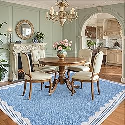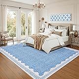 GarveeHome Scalloped 8x10 Rug for Living Room Washable Non-Slip Solid Blue Modern Minimalism Low-Pile Carpet 8 x 10 Rug for Bedroom Dining Nursery Mat with Rubber Back