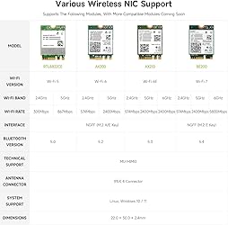 Part Number: PoE M.2 E KEY HAT+ PCIe To M.2 E KEY Adapter With PoE Function for Raspberry Pi 5, Compatible With NGFF (M.2 E Key) Wireless NIC, Raspberry Pi 5 PCIe HAT Supports inputting Bluetooth signal into the Raspberry Pi via USB adapter Based on 16PIN PCIe Interface of Raspberry Pi 5. Standard Raspberry Pi 40PIN GPIO stackable header, allows connecting other HATs Providing both network connection and power supply for your Raspberry Pi in one cable