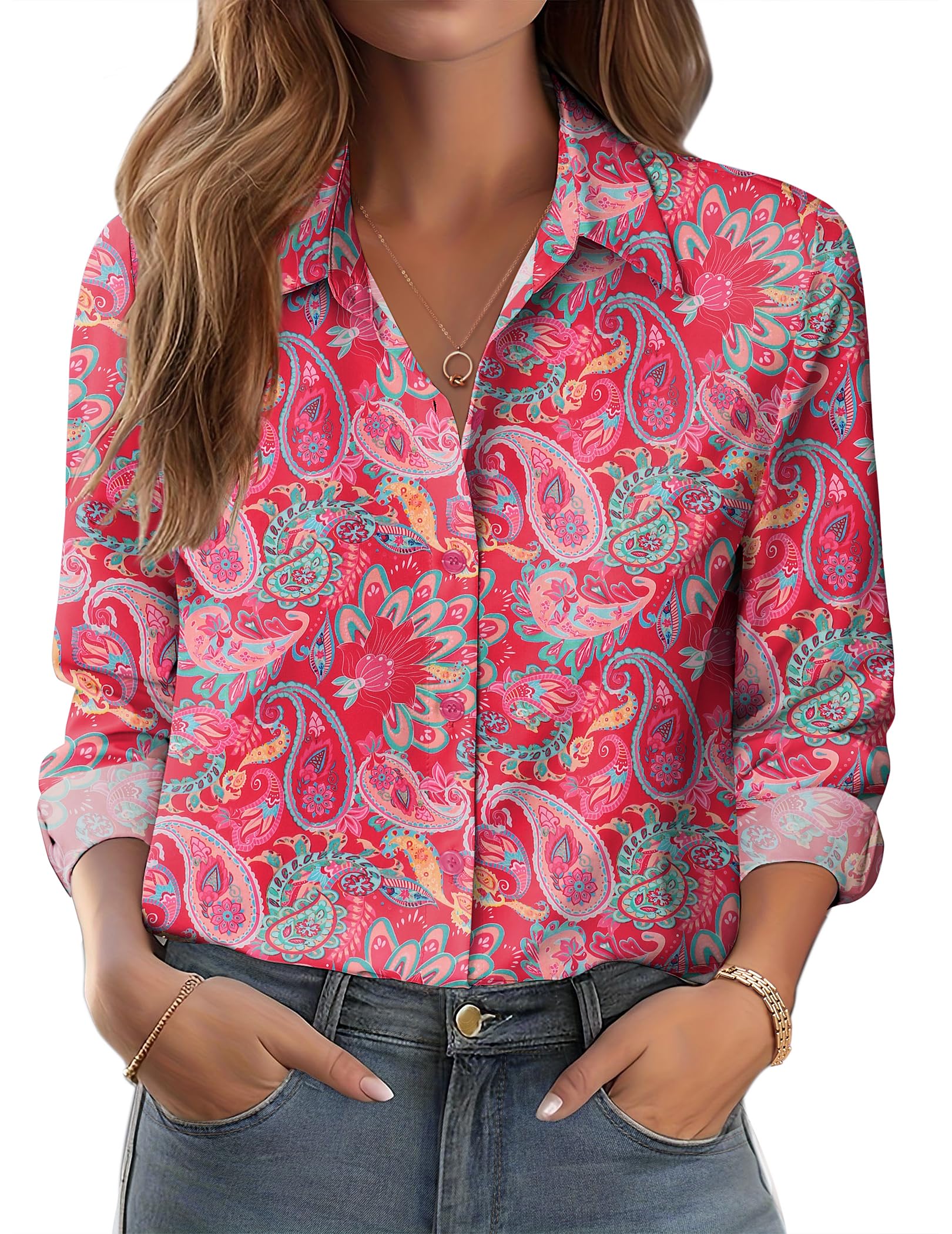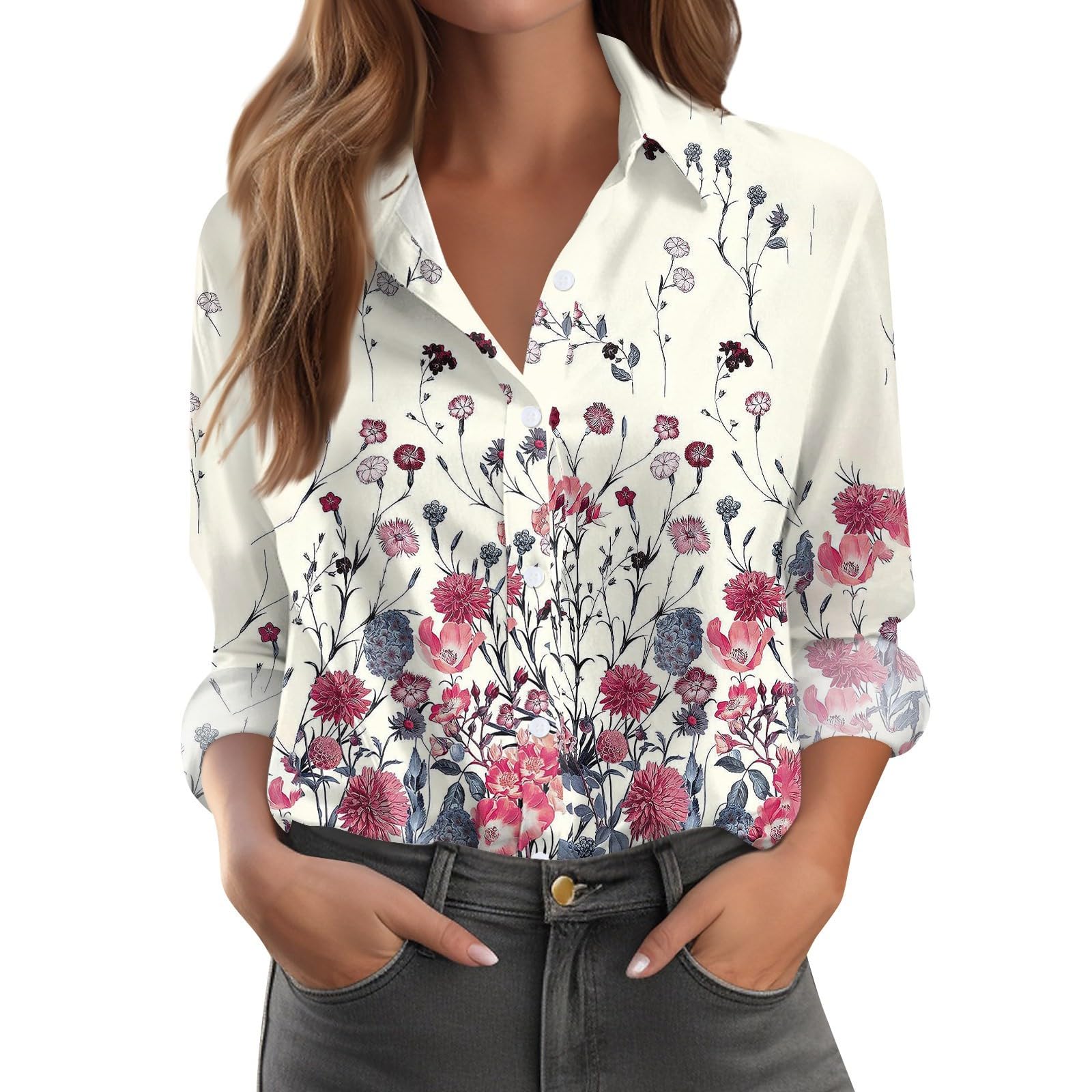 Hawaiian Shirts for Women Resin Button Casual Short Sleeve Floral Tropic Print Summer Blouse Top